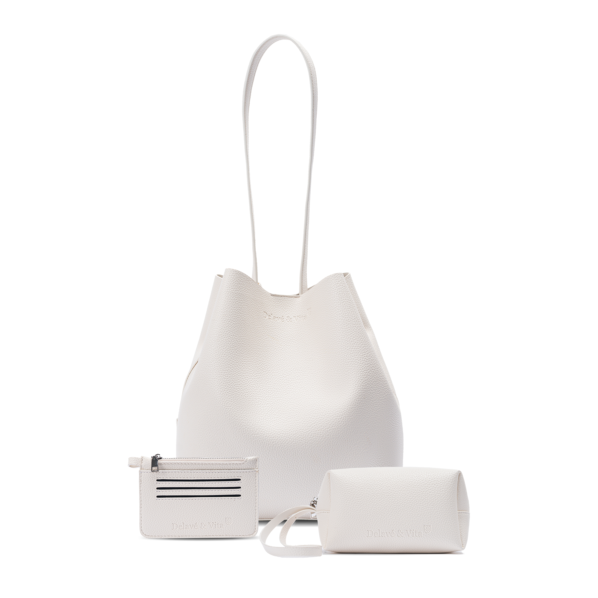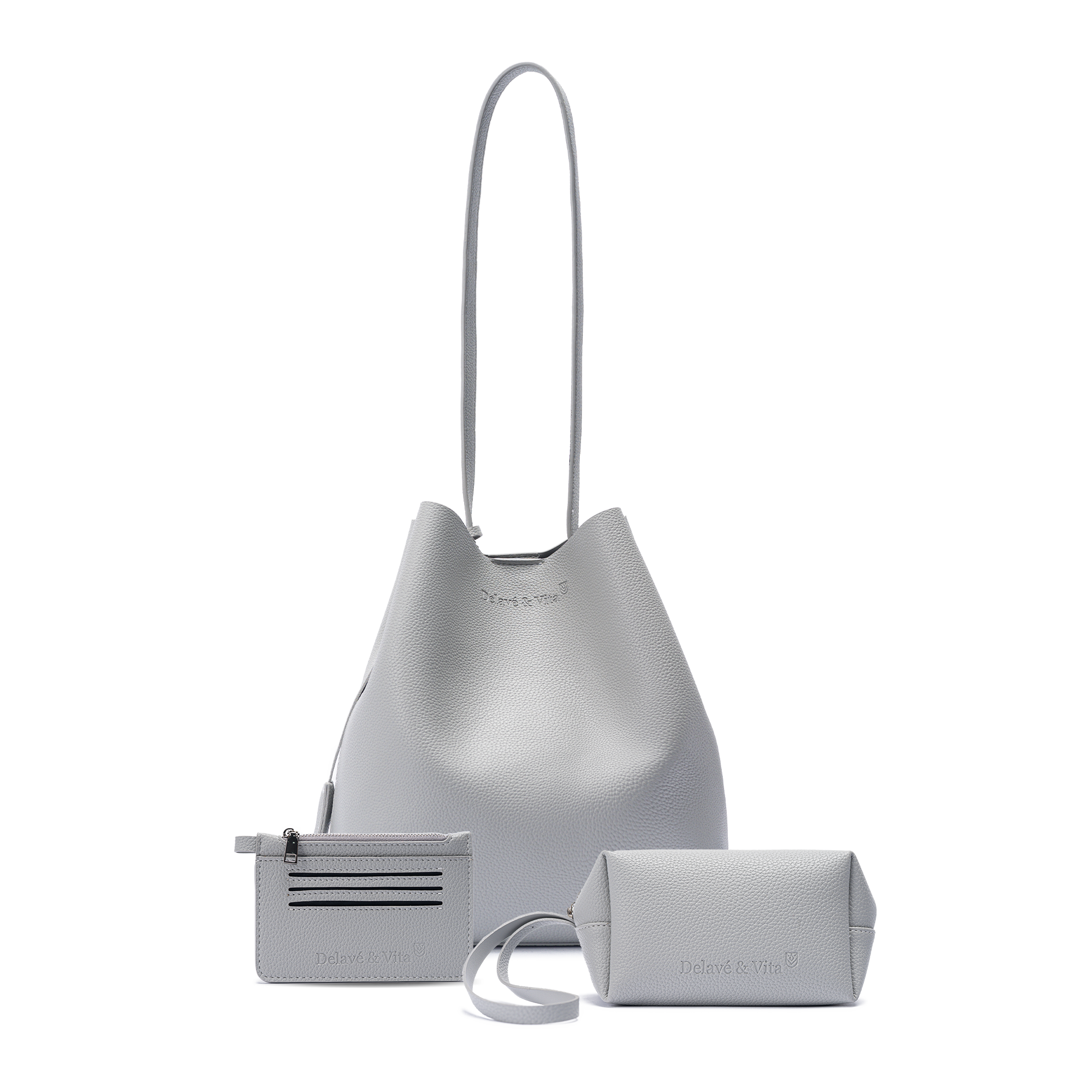• Soft, smooth, cuCombo 01 includes 3 products: 1 Katt Bucket Bag, 1 Go-on Pouch, 1 Mimi Slim Wallet.Combo 01 includes 3 products: 1 Katt Bucket Bag, 1 Go-on Pouch, 1 Mimi Slim Wallet.shy grain with a subtle sheen.