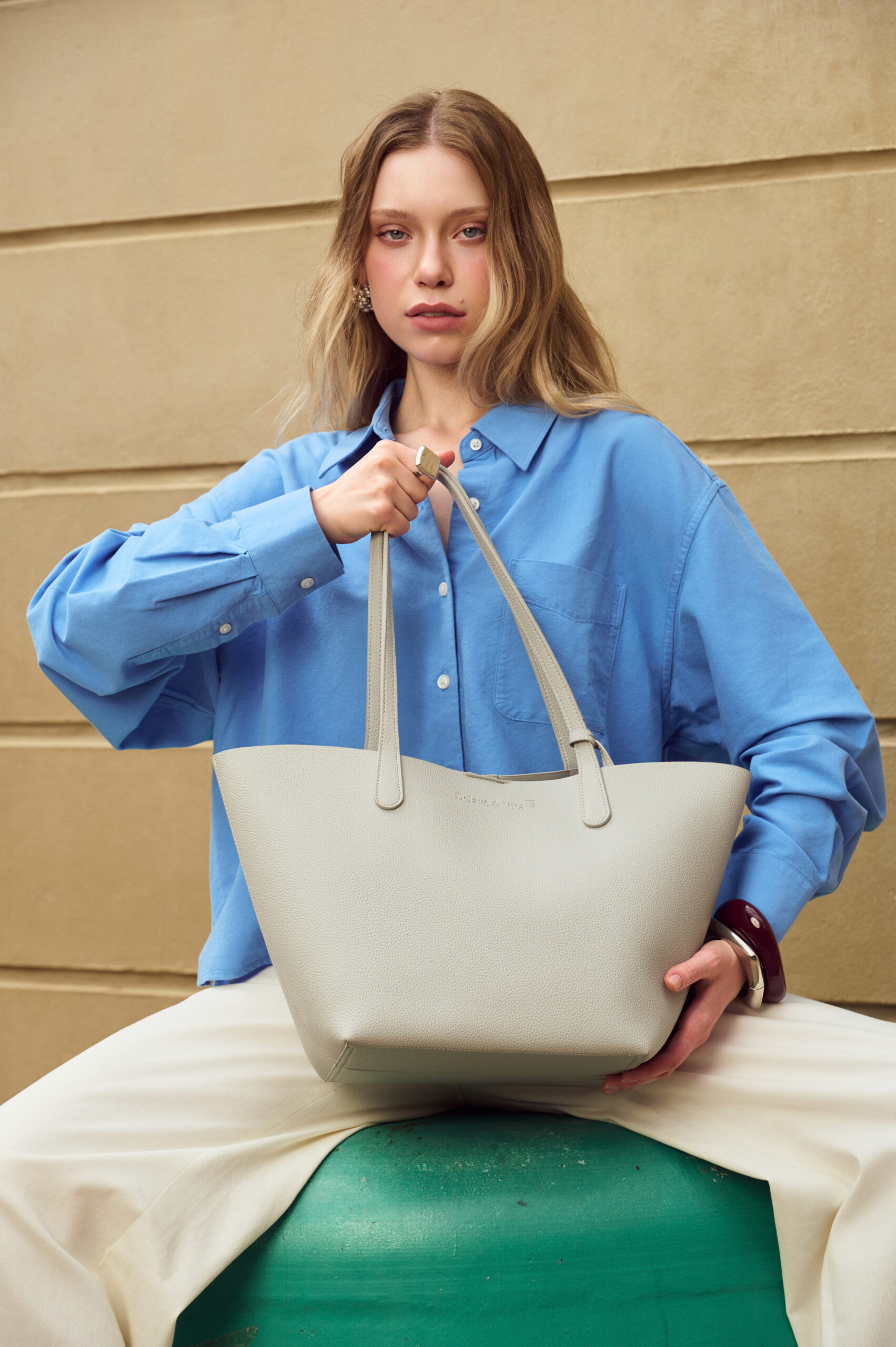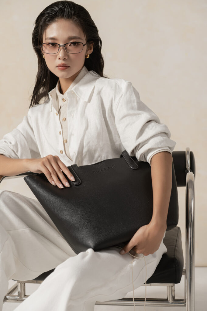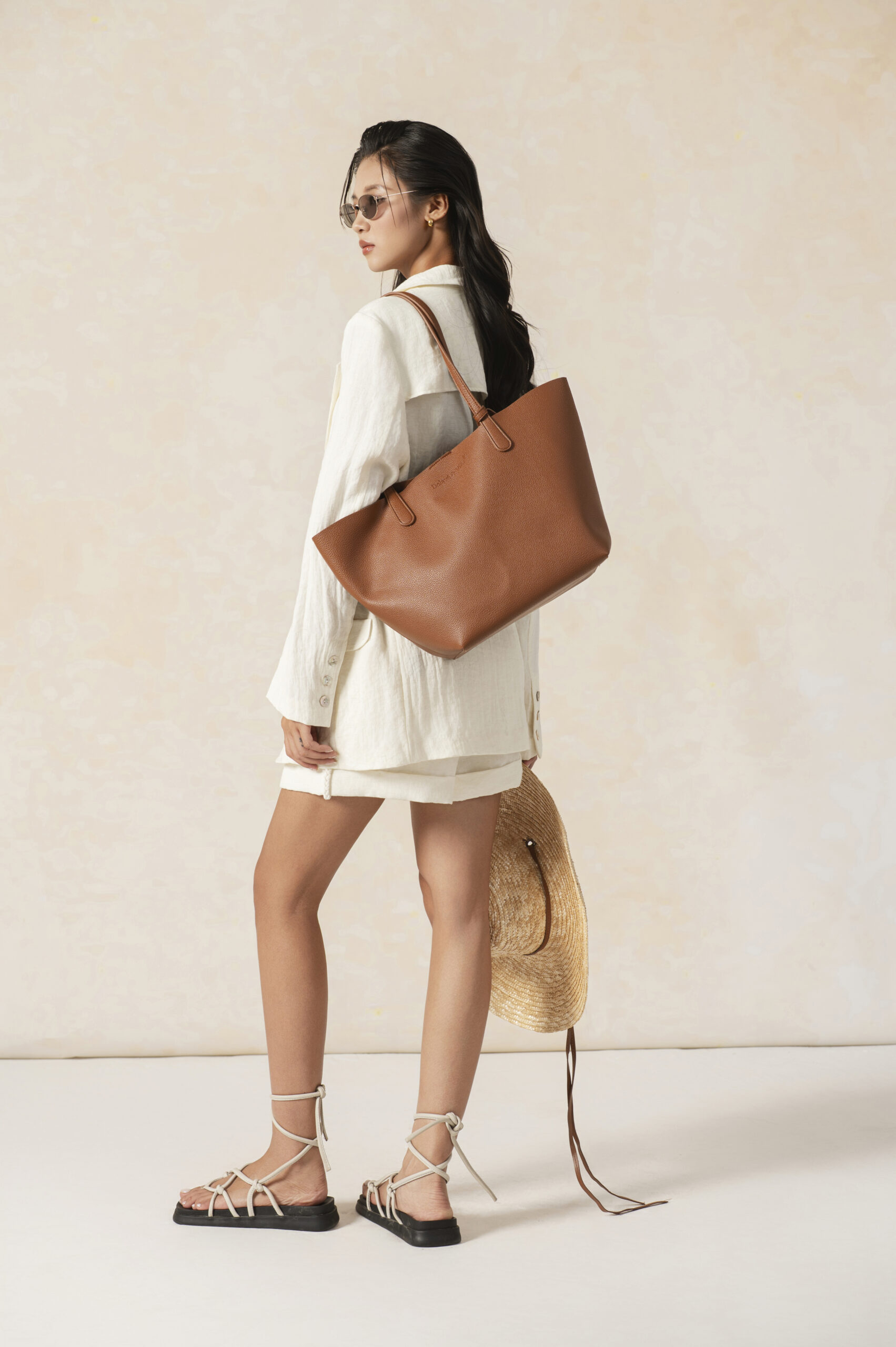 Vita features a softly boxy silhouette with just-right structure — stands neatly when set down, drapes fluidly on shoulder.
